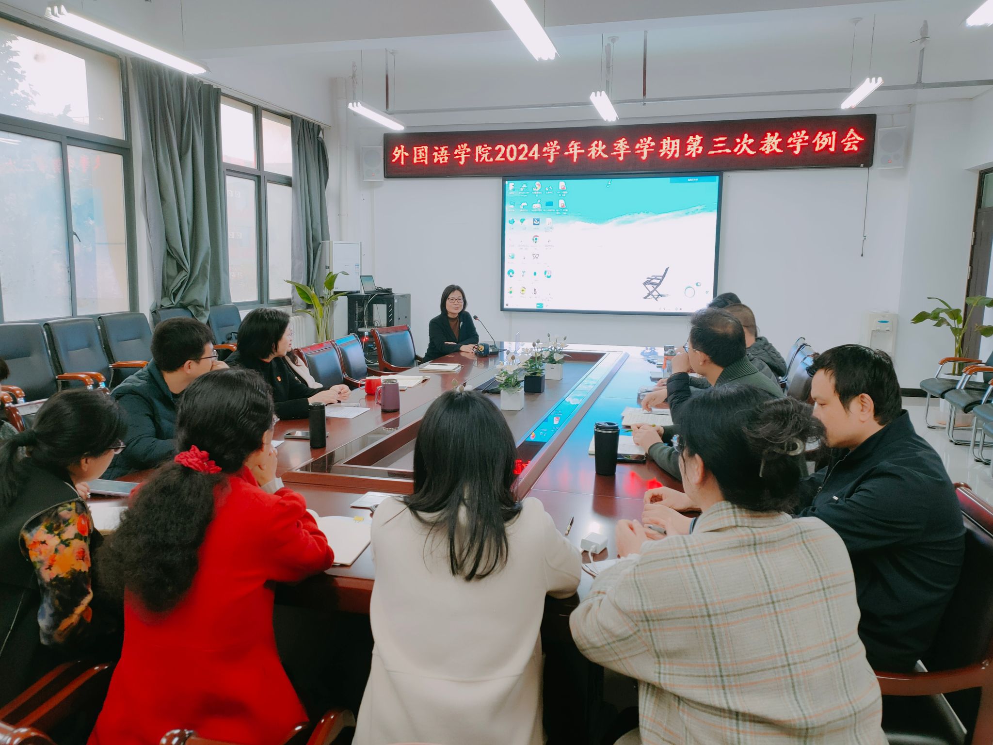 11月12日下午,万象城allwincity官网在龙湖校区3号组团A402会议室召开本学期第三次教学工作例会,学院领导、各系(部、中心)主任和副主任参加会议,会议由学院院长姚晓鸣主持。