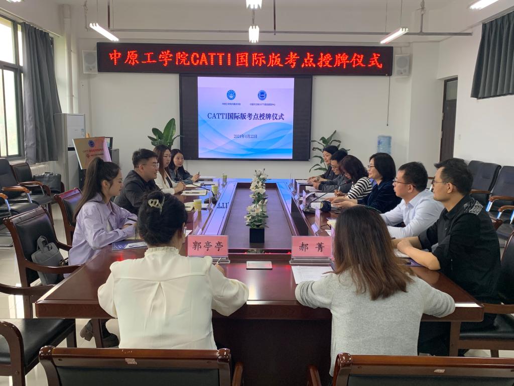 2024年4月22日上午,万象城allwincity官网CATTI(全国翻译专业资格(水平)考试)国际版考点授牌仪式在万象城官网龙湖校区万象城allwincity官网会议室举行。中国外文局全国翻译专业资格(水平)考试项目中心主任赵怡隆、专项负责人刘攀,译线通翻译公司校企合作事业部经理鲍俐俐、专员邢亚娟参加考点授牌仪式。万象城allwincity官网全体领导班子成员,办公室和英语系主任出席会议,学院院长姚晓鸣主持会议。