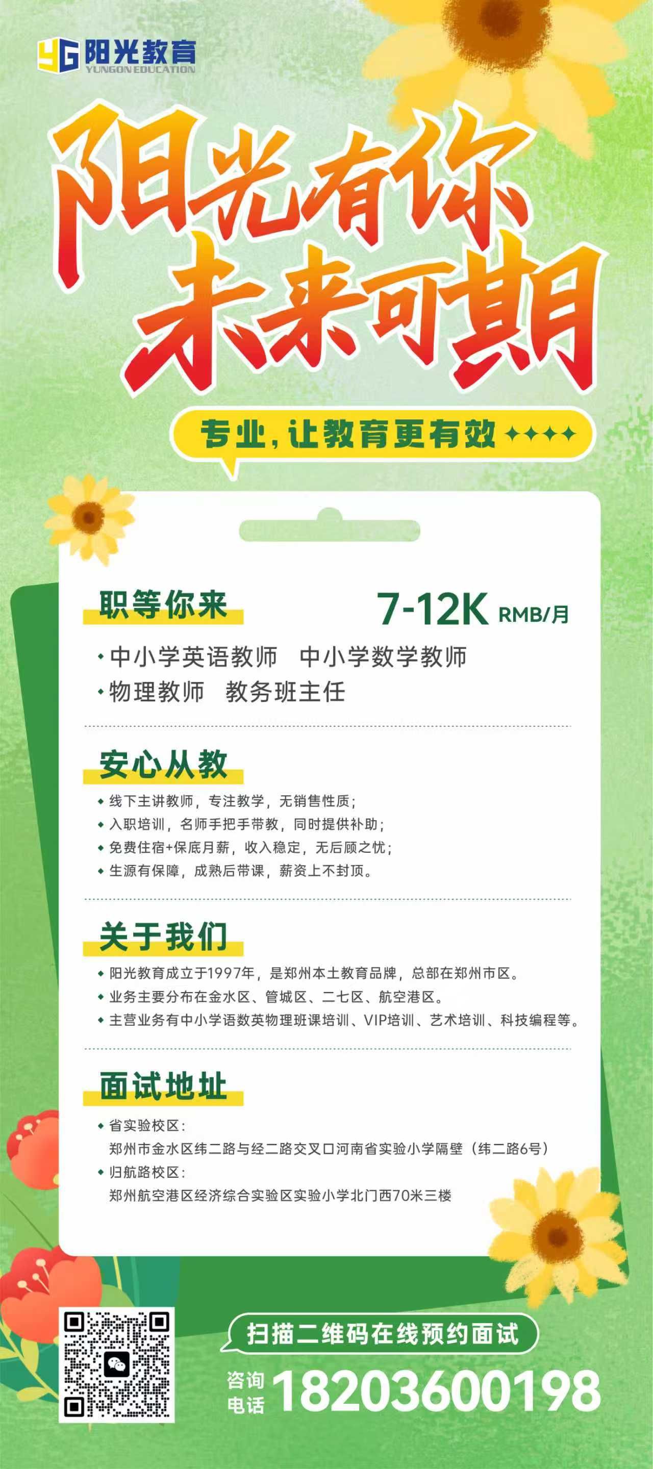 招聘信息|郑州航空港区阳光教育培训中心